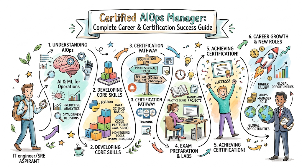 The Certified AIOps Manager represents a professional standard for individuals who oversee the integration of artificial intelligence into IT operations. It exists because modern enterprises struggle with alert fatigue and slow incident response times in complex distributed systems. This program focuses on real-world, production-focused learning over abstract theory, ensuring that students can apply what they learn. It aligns perfectly with modern engineering workflows by teaching professionals how to use data-driven insights to improve system reliability. Instead of manual troubleshooting, the focus shifts to building systems that can predict and prevent issues before they occur. This certification ensures that a manager can lead teams in implementing enterprise-grade AIOps practices effectively across the organization.