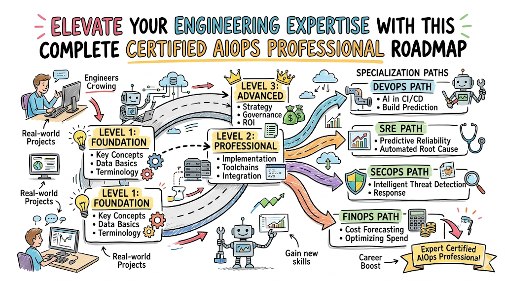 The modern technology landscape is changing faster than ever before. For many years, we relied on manual efforts to manage servers and applications, but that is no longer enough. This guide focuses on the Certified AIOps Professional program, which is designed for engineers who want to stay ahead of the curve. This certification is essential for those working in DevOps, cloud-native environments, and platform engineering. By moving toward artificial intelligence for operations, professionals can automate complex tasks and predict issues before they happen. This guide is built to help you understand how this path fits into your career. We will look at the different levels of learning and how they apply to real-world work. Aiopsschool provides the framework for this journey, ensuring that you make informed decisions about your professional growth.